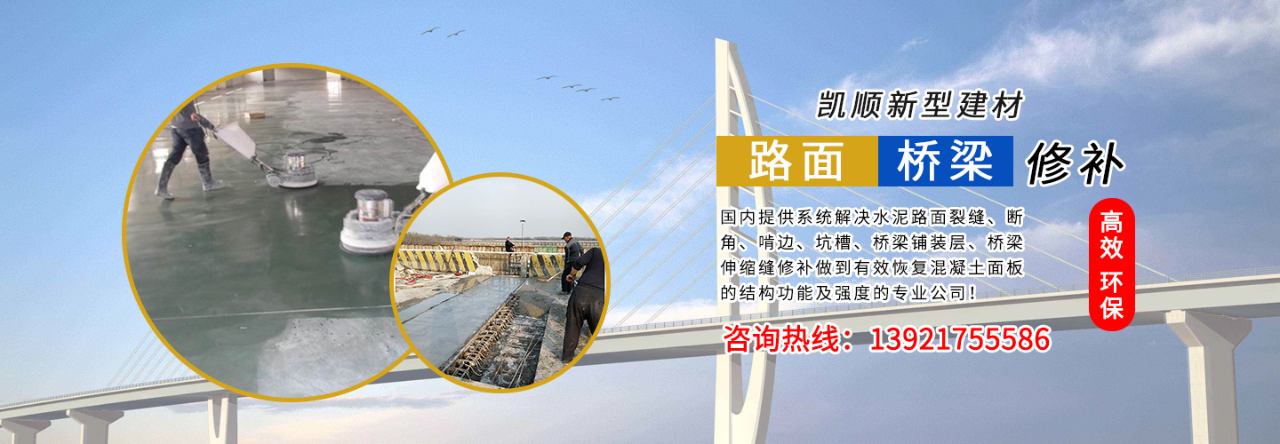 江蘇凱順新型建材有限公司是國內(nèi)提供系統(tǒng)解決水泥路面裂縫、斷角、啃邊、坑槽、橋梁鋪裝層、橋梁伸縮縫修補做到有效恢復(fù)混凝土面板的結(jié)構(gòu)功能及強(qiáng)度的專業(yè)公司!為市政工程、高速、國道、省道、縣鄉(xiāng)道路的改造及大修、中修等大型工程提供了快速、高效、環(huán)保、經(jīng)濟(jì)系統(tǒng)方案和技術(shù)支持!